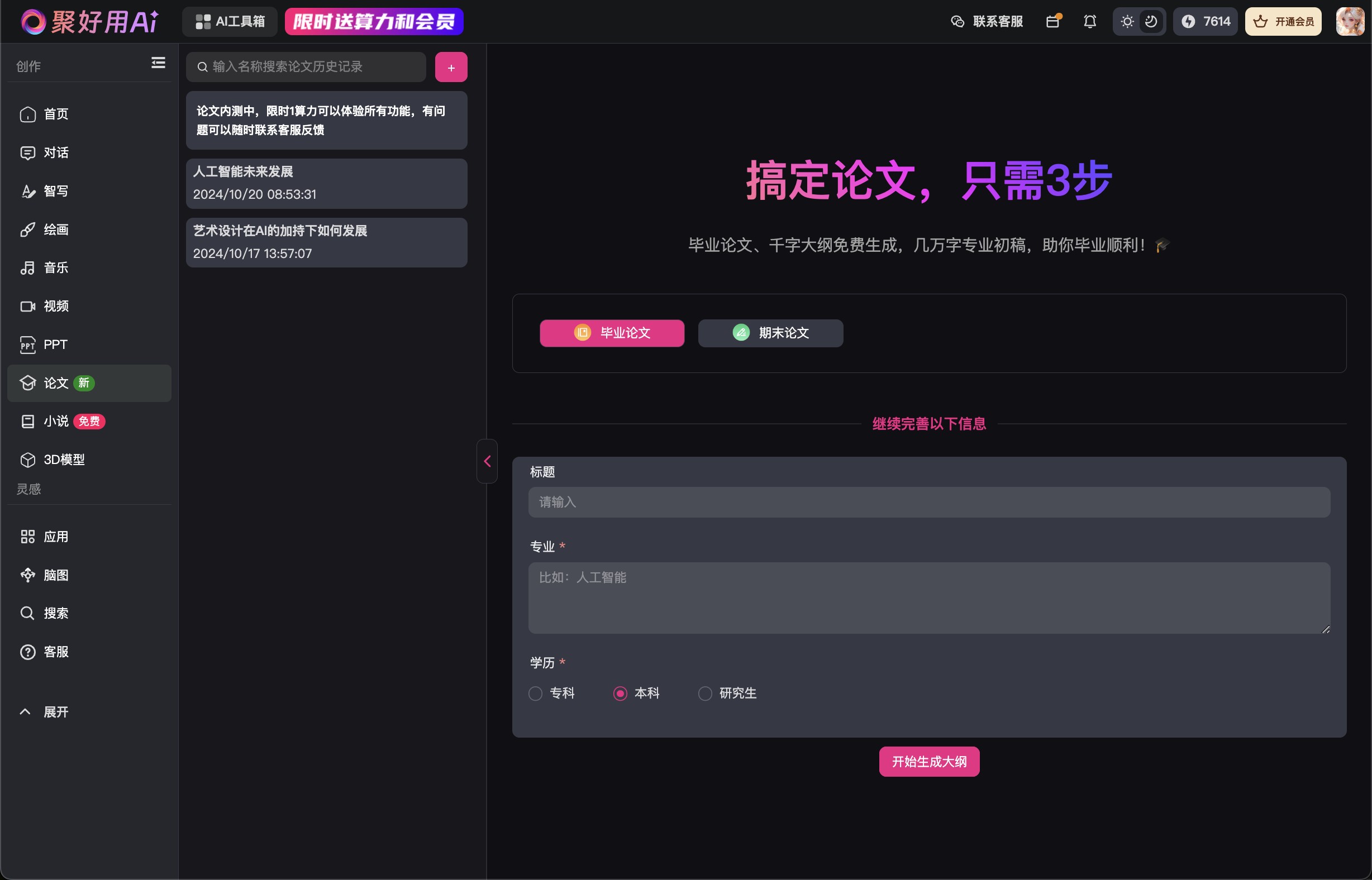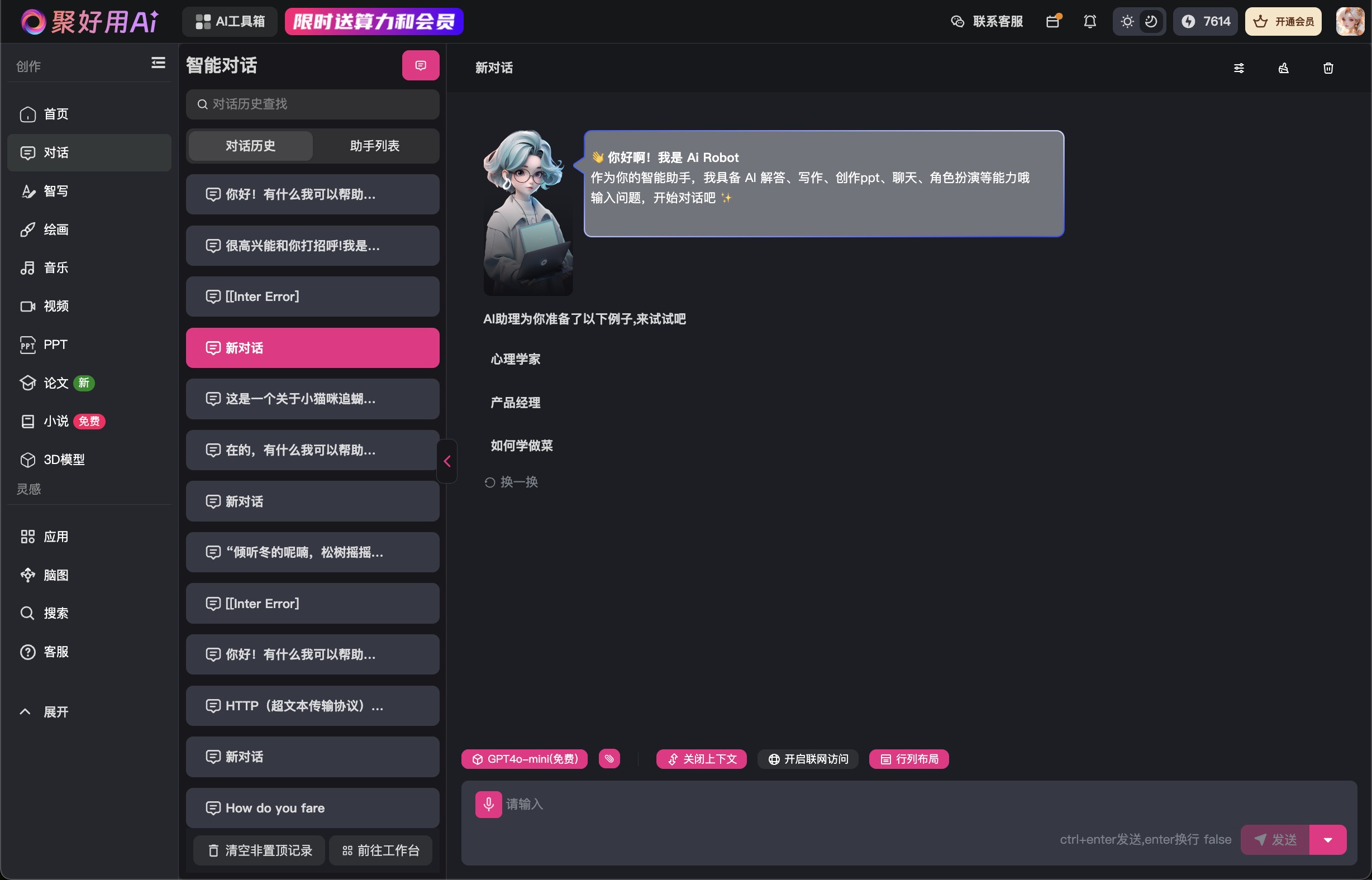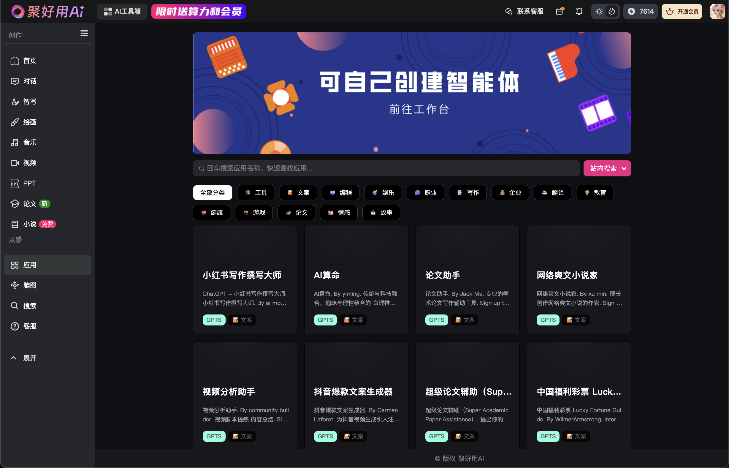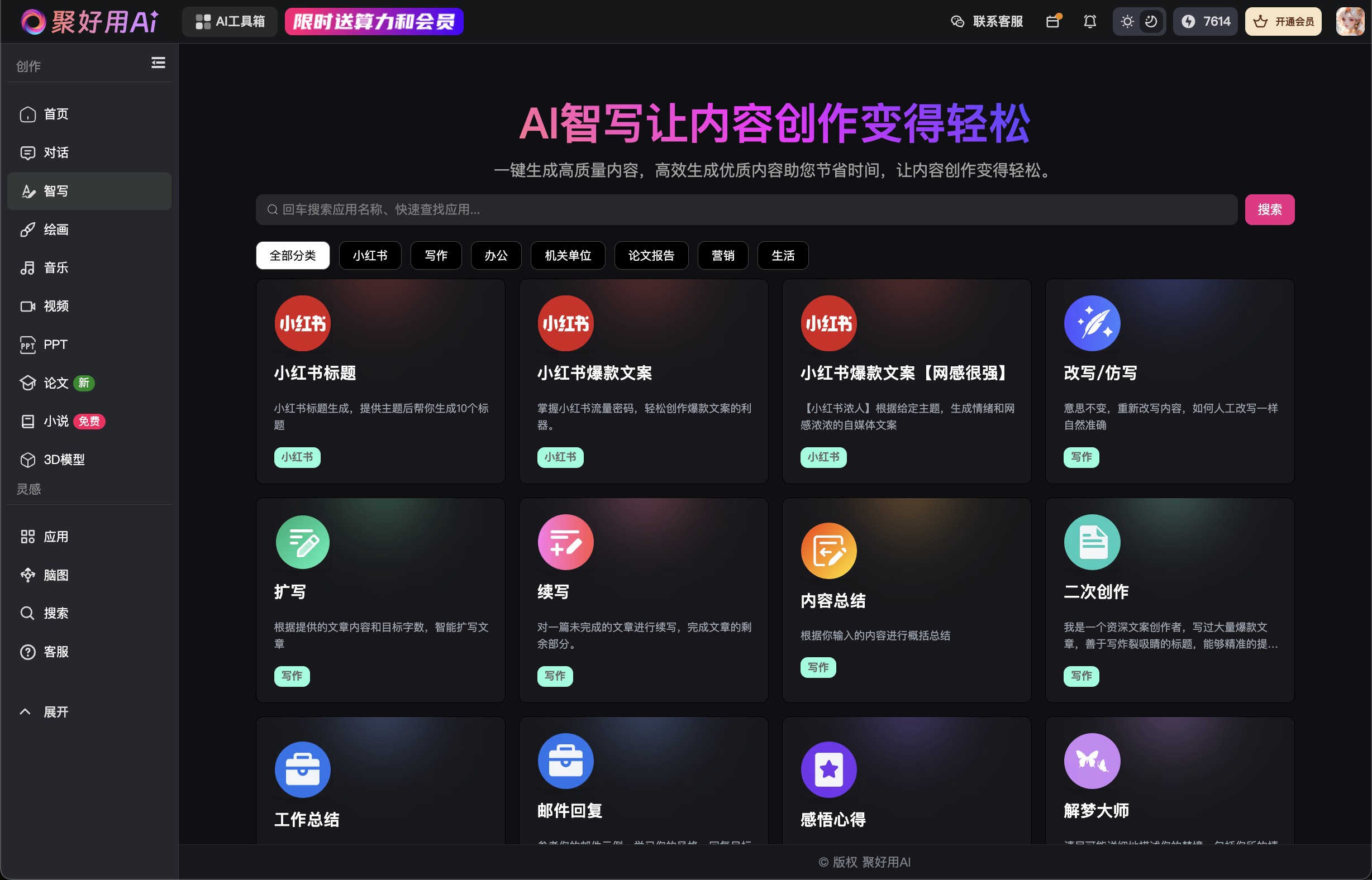 文案、小说、论文、写作等内容创作工具都可以轻松地与AI智能助手结合,让创作变得更加简单、快速、高效。