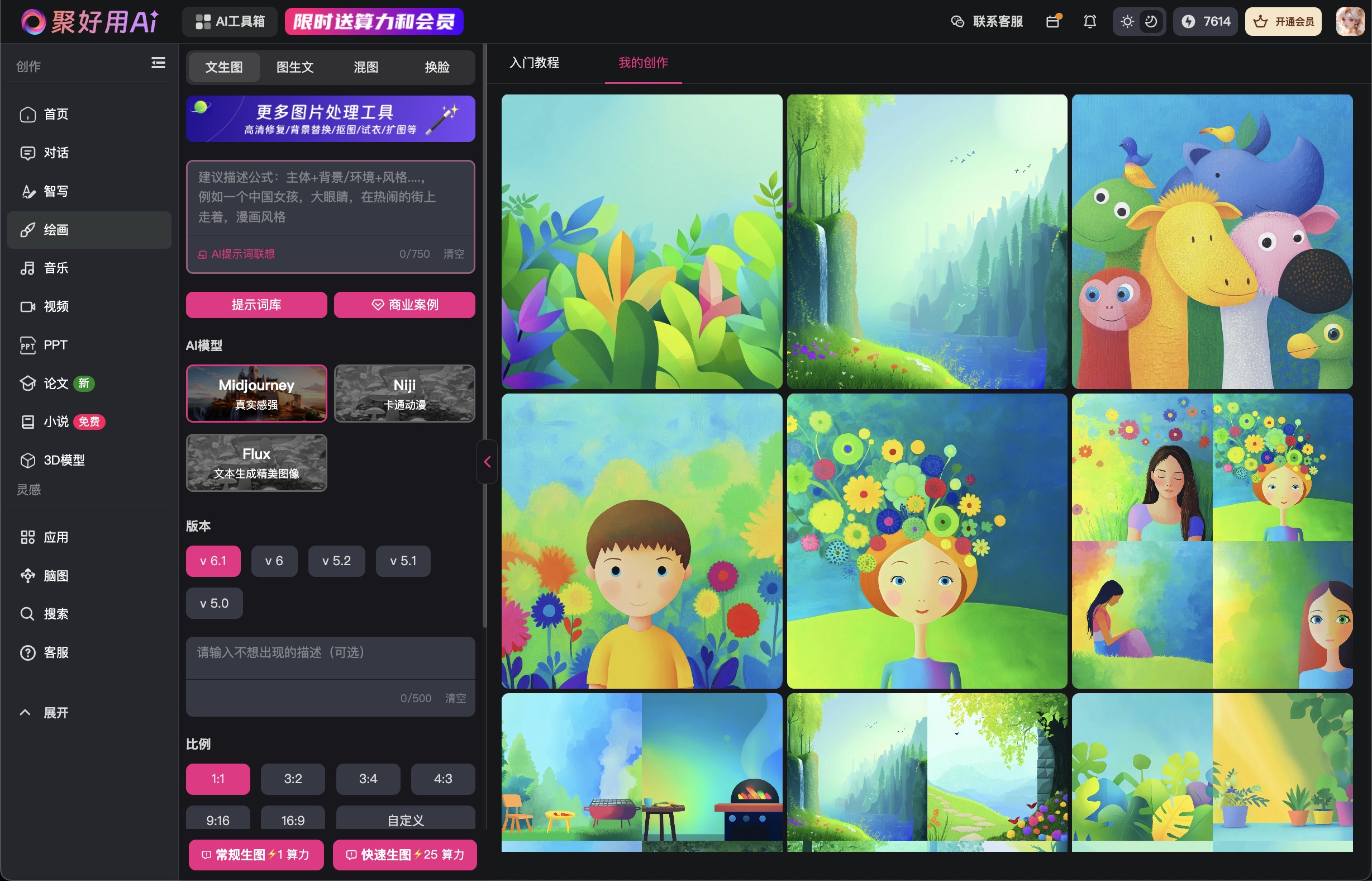 接入全球顶尖的绘图大模型:即梦、可灵、Stable Diffusion,助您轻松开启创意之旅。平台提供强大功能支持:从文字生成图片到图片生成图片,角色风格一致性保持、图片解析、图片混合、换脸、抠图、高清图生成等,无所不能。